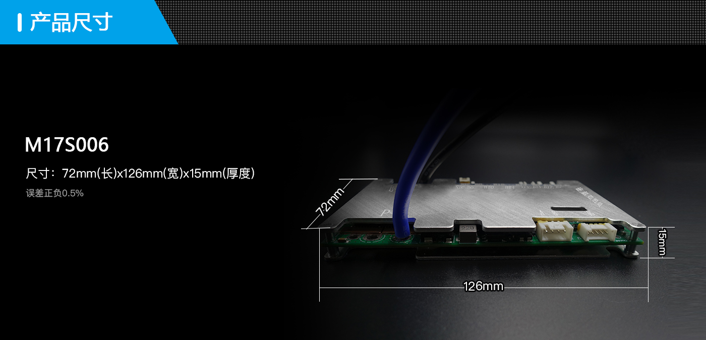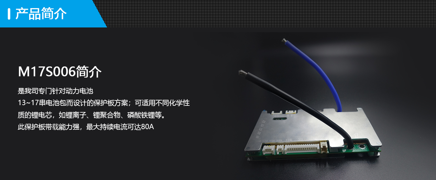 BP-M17S006 是我司專門針對動力電池13~17串電池包而設計的保護板方案;可適用不同化學性質(zhì)的鋰電芯,如鋰離子、鋰聚合物、磷酸鐵鋰等。此保護板帶載能力強,最大持續(xù)電流可達80A。